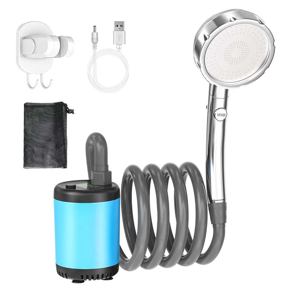 Il te suffit de remplir une bassine, plonger la pompe, et l’eau jaillit comme sous une vraie douche.